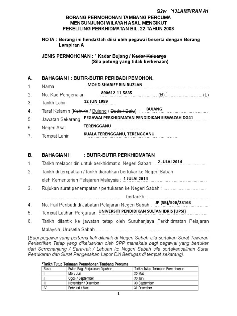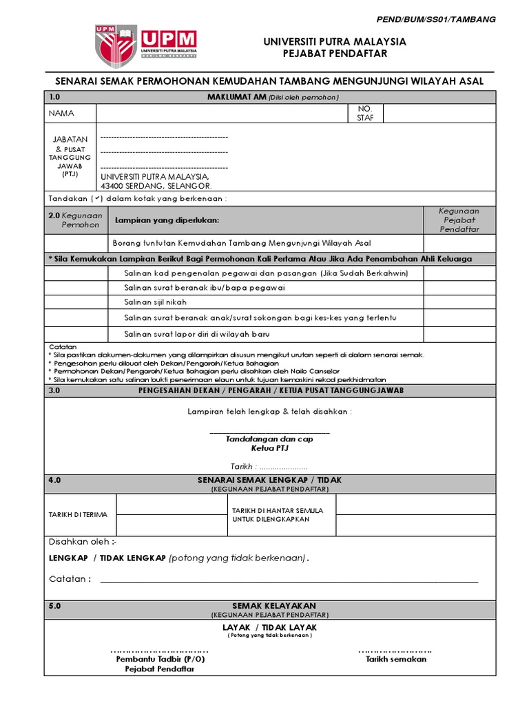 This checklist is to be filled in by the applicant. By zuriaty zaki 10820 views. Kemudahan tambang mengunjungi wilayah asal bagi pegawai yang. Contoh surat akuan sumpah dan perjanjian pelepasan penerimaan tukar majikan(kematian majikan asal). Borang permohonan baharu credentialing (1 salinan) 2. Permohonan untuk menjalankantugas rasmi di luar pejabat. Senarai semak hanya bagi borang permohonan, akuan berkanun dan karya sahaja. Borang permohonan kemudahan tambang mengunjungi wilayah asal (pekeliling perkhidmatan bilangan 22 tahun 2008). Saya memohon menggunakan kemudahan tambang mengunjungi wilayah. Saya memohon menggunakan kemudahan tambang mengunjungi wilayah asal untuk Senarai semak permohonan pengambilan tanah. Borang permohonan baharu credentialing program perkhidmatan farmasi. Permohonan tambang percuma ini 6 tahun 1987:
