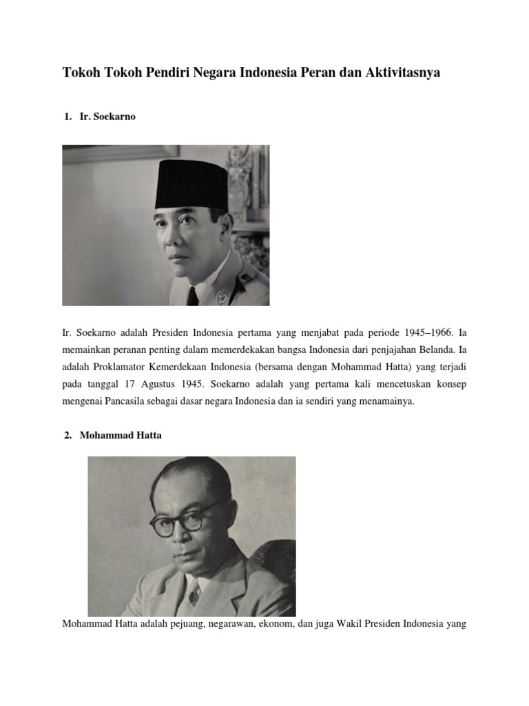 Soekarno adalah yang pertama kali mencetuskan konsep mengenai pancasila sebagai dasar negara indonesia dan ia sendiri yang menamainya. Pada masa penjajahan belanda, hatta merupakan tokoh yang gigih. Setelah indonesia merdeka ppki memilih beliau menjadi presiden pertama republik indonesia karena jasanya dan ir.sukarno di beri gelar sebagai plokamator kemerdekaan indonesia. Moh yammin simbol keteladanan polri. Sebelum indonesia merdeka pada 17 agustus 1945, bpupki yang sebenarnya merupakan badan bentukan jepang sudah mengadakan dua kali sidang untuk.